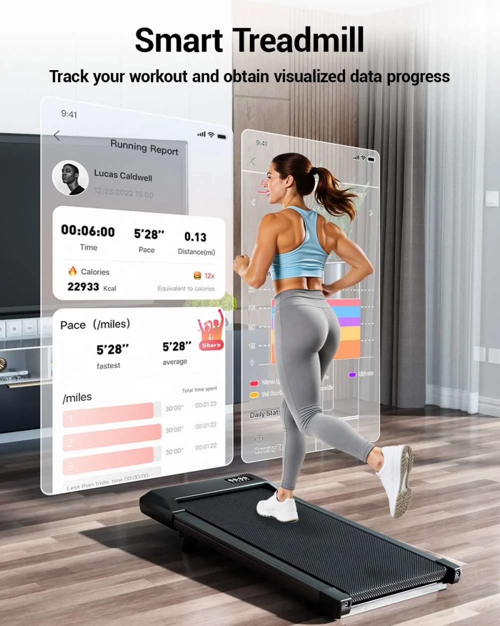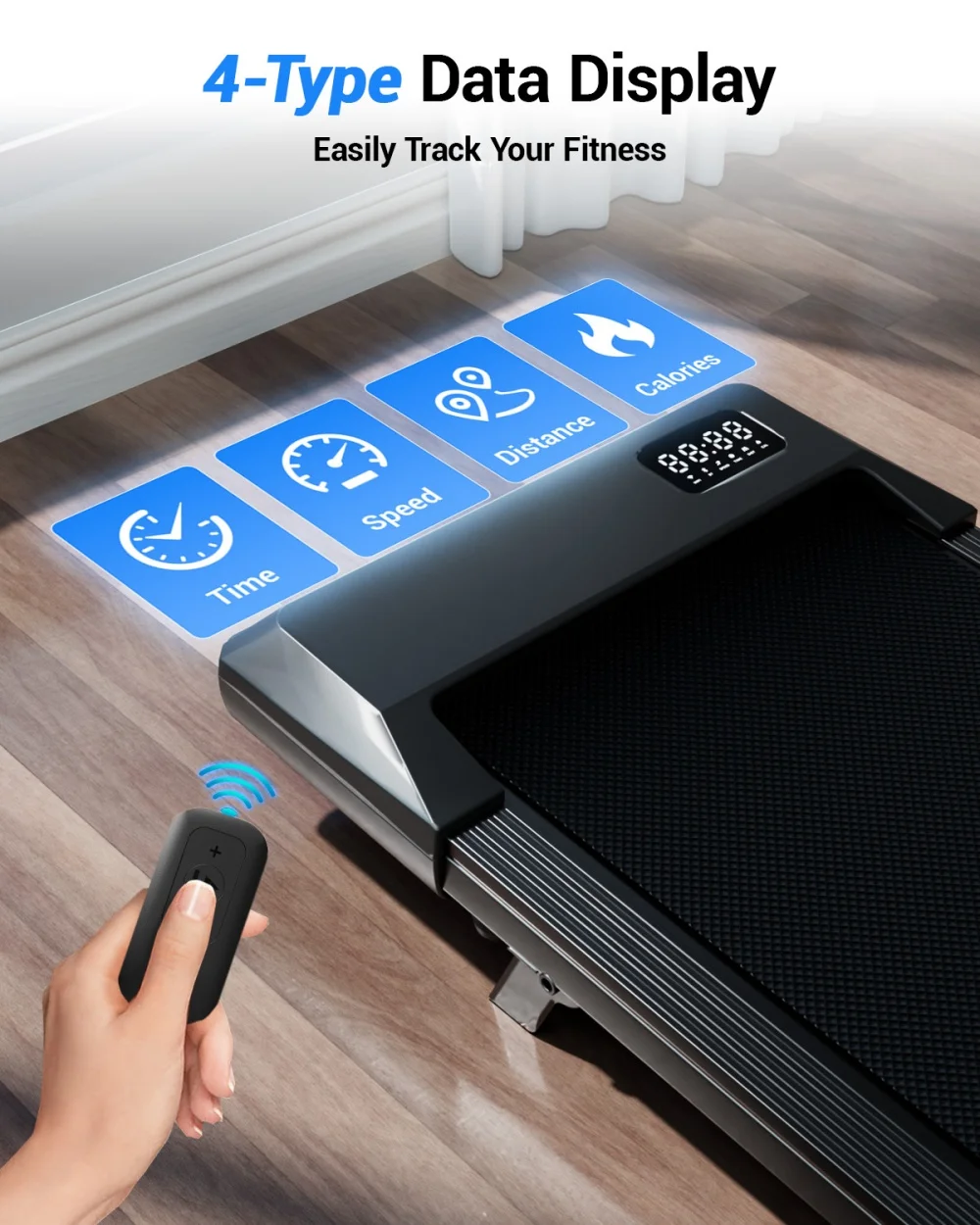 Adjustable Speed up to 3.8 MPH ideal for walking, light jogging, and work-from-home movement