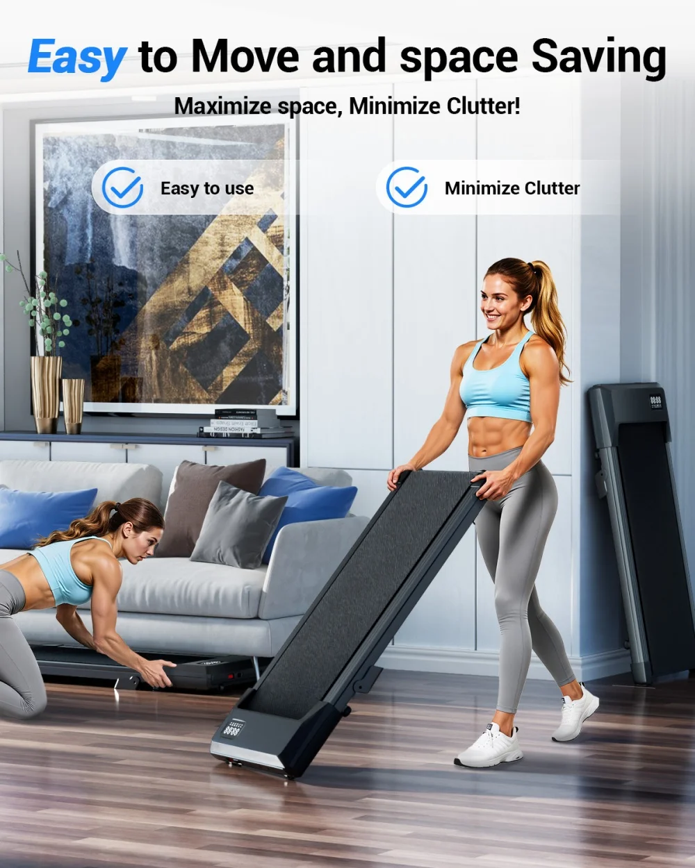 Powerful 2.5HP Motor supports up to 300 lbs, delivering stable and quiet performance for daily home workouts